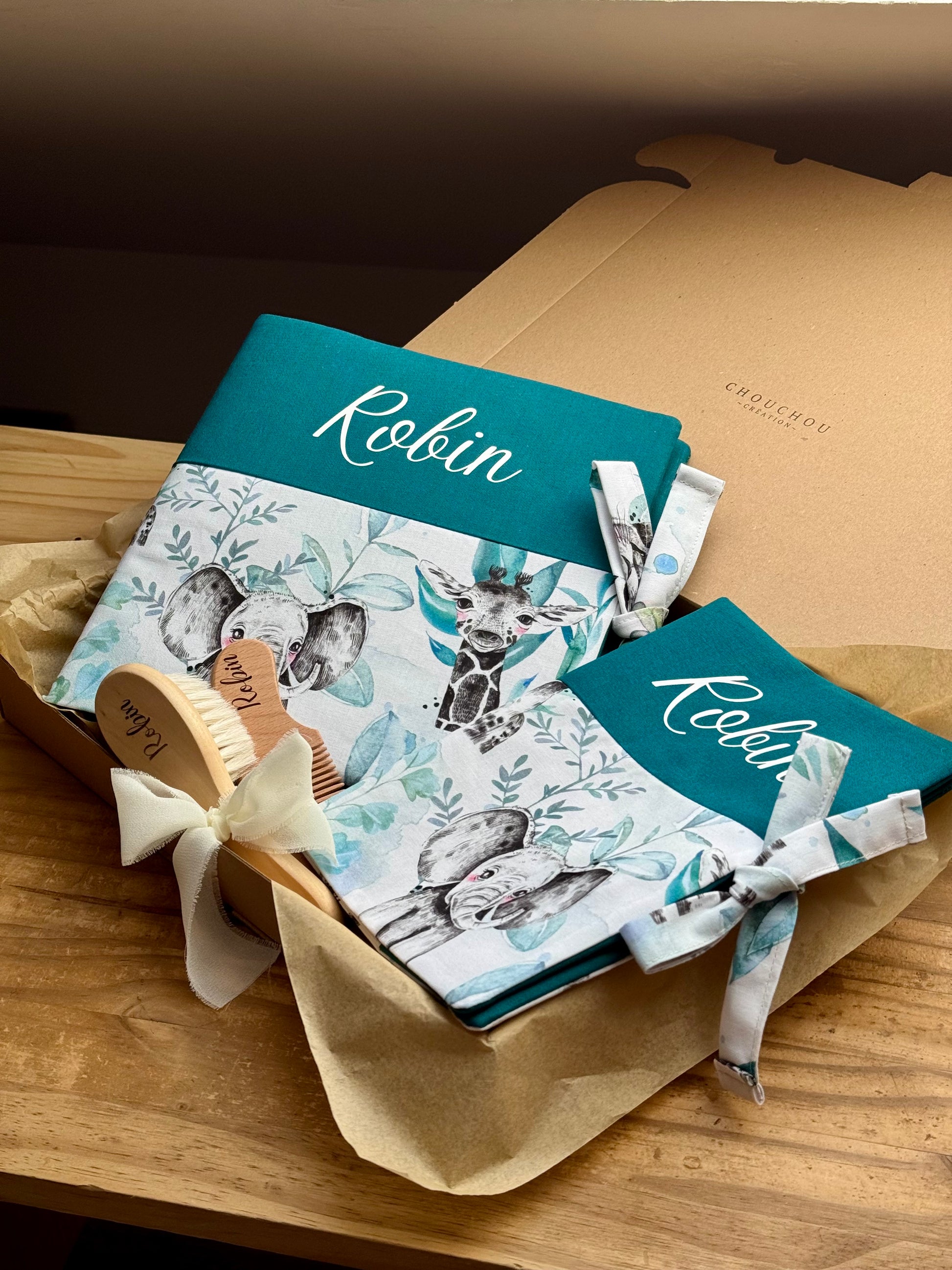 Album photo + Carnet de santé + Brosse et peigne personnalisé 💙